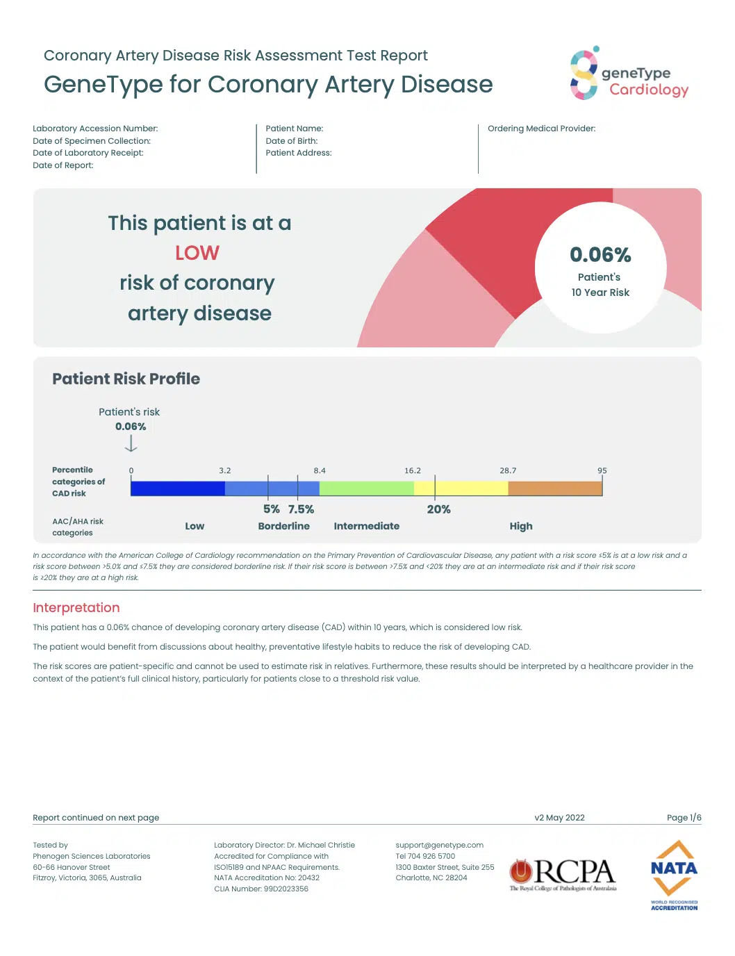 With geneType™, you can incorporate an additional risk factor, polygenic risk, that looks at underlying common genetic markers associated with CAD.