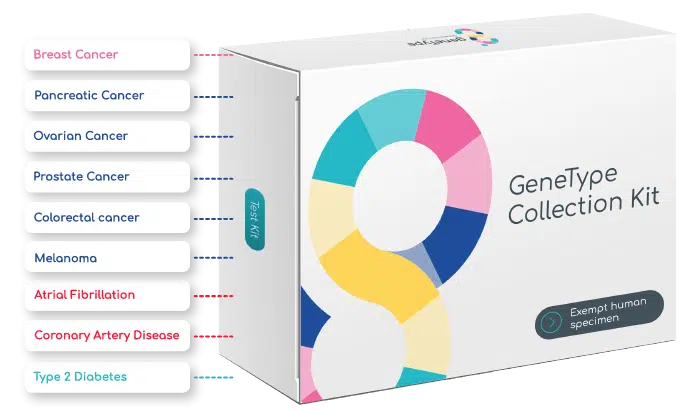 The Multi-Risk suite of tests is for adults 40-85 years of age. At maximum, a woman would be eligible for eight diseases in the panel; a man would be eligible for seven. Starting at age 30, a patient may qualify for geneType’s™ cancer risk assessments only.