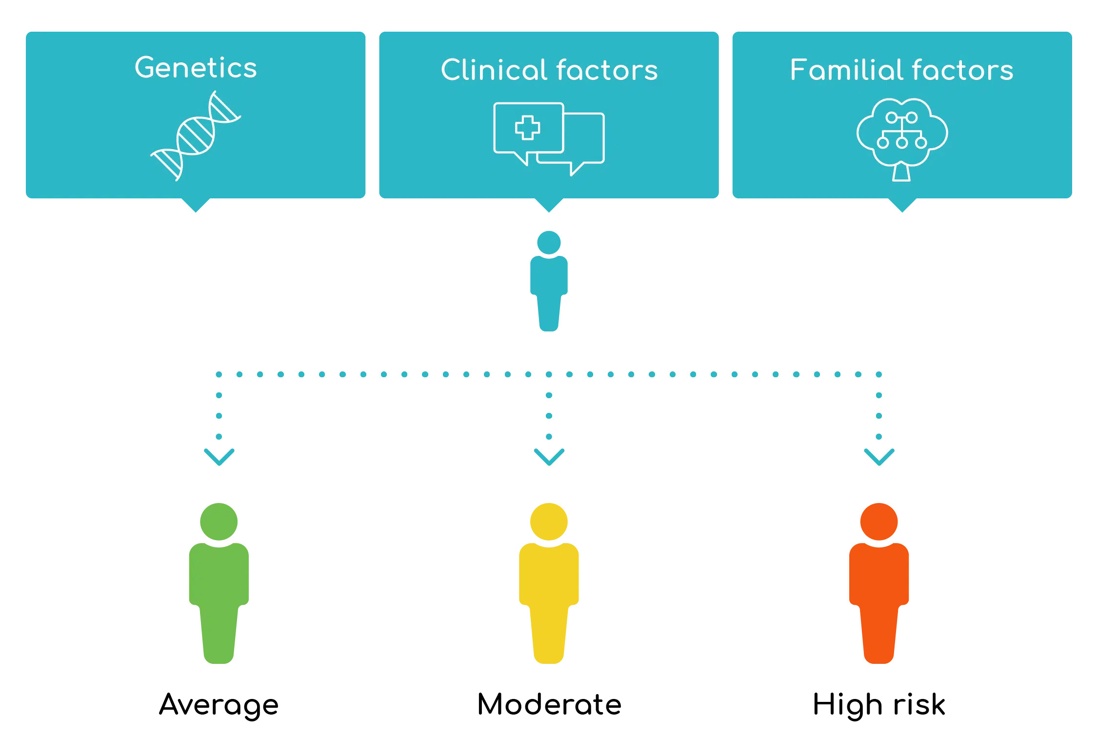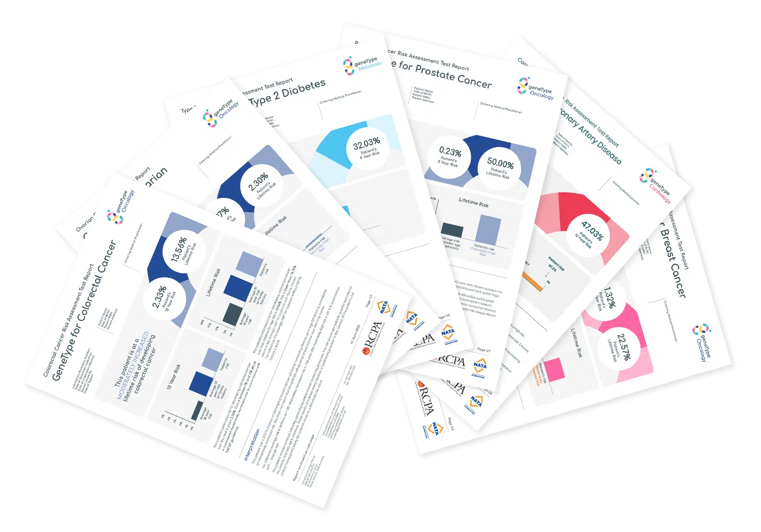 While many risk assessments focus on family history and heritable genetic markers², geneType™ Multi Test goes beyond this by incorporating clinical, familial and genetic factors that affect disease risk.
